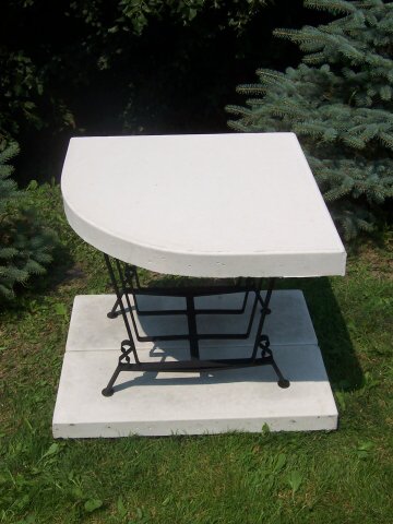 Stolek k zahradnímu krbu, lze použít z obou stran podle toho jak Vám to vyhovuje. Je vhodný pro odkládání všech možných věcí, které při grilování potřebujete mít u sebe. Stolek je vyroben z kvalitního šedého betonu.